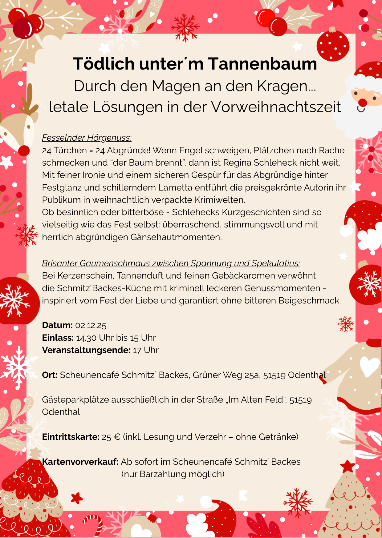 AUSVERKAUFT: Am 09.12.2025 liest Regina Schleheck aus ihren "kriminellen" Weihnachtsgeschichten!