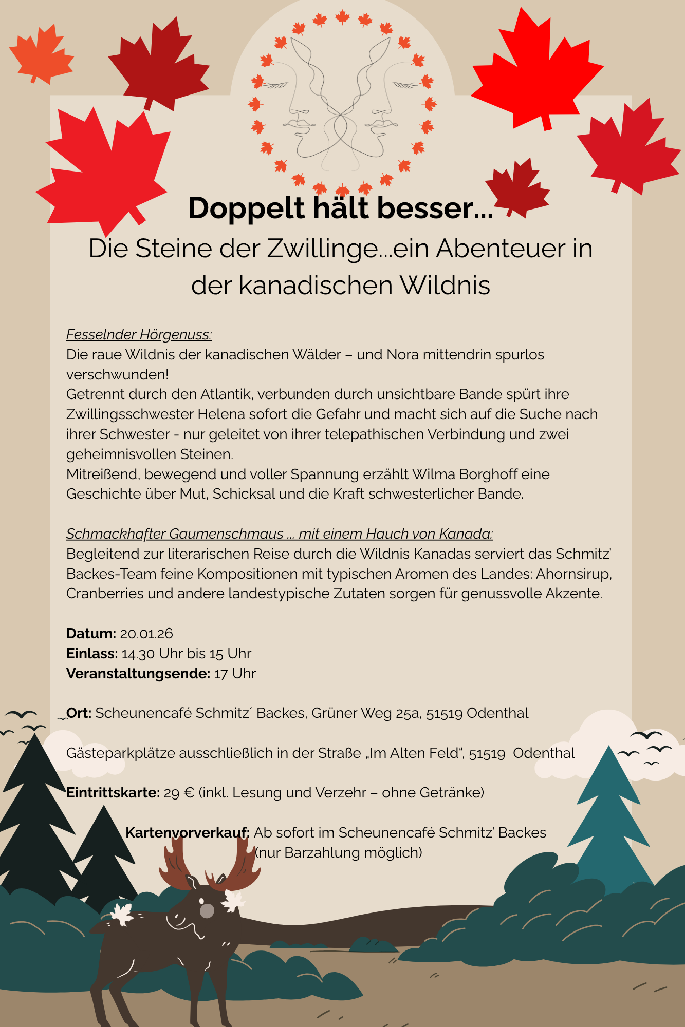 KARTEN ERHÄLTLICH: Am 20.01.2026 liest Wilma Borghoff aus ihrem Roman "Die Steine der Zwillinge"!